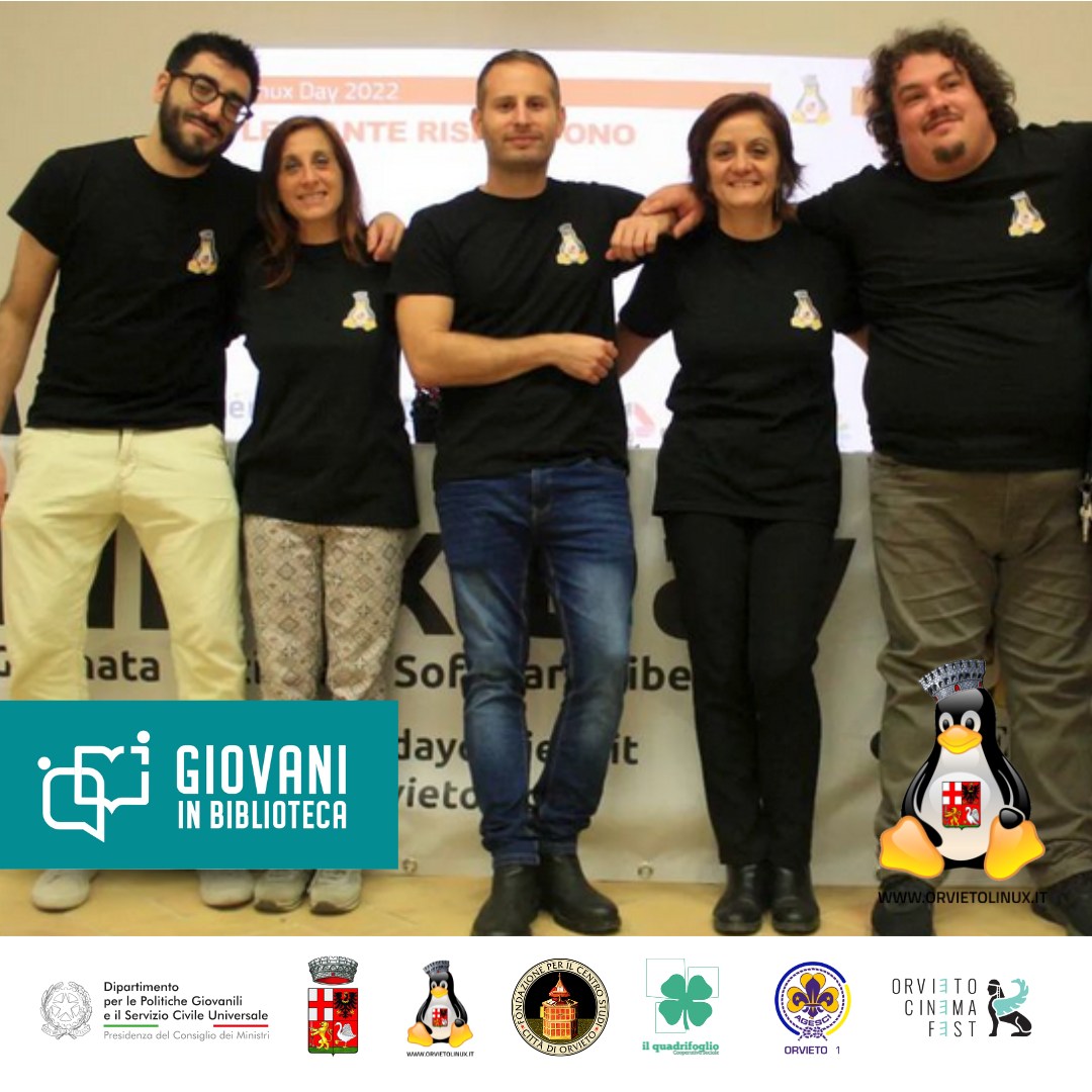 L’Associazione di Promozione Sociale Orvieto Linux User Group, rappresentata da Marco Ciammella, Leonardo Picchiami, Iris Biondi e Gabriele Ponzo, illustra il programma della giornata